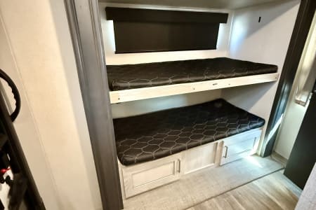 🛏️ Sleeping for 8+: Private master bedroom, rear bunkhouse, loft, and convertible sofa/dinette