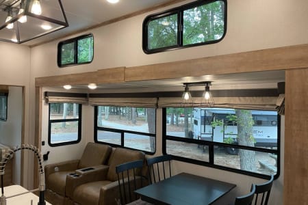 • Complete with 3 queen beds, kitchen, 1.5 bathrooms, fireplace, theater seating, and outdoor kitchen. Rental delivery and set up.