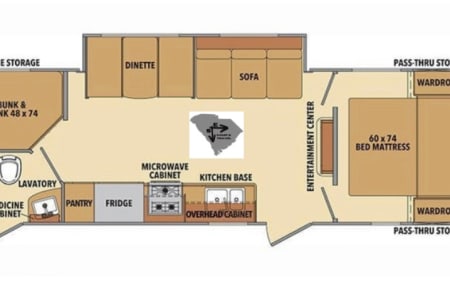 Complete with kitchen, queen private bed, full size bunk beds, outdoor shower, and full bathroom. Rental delivery and set up.