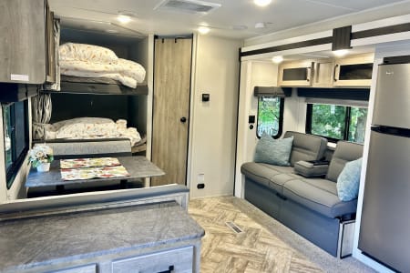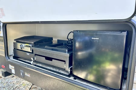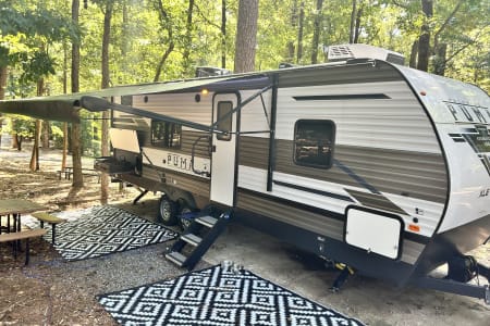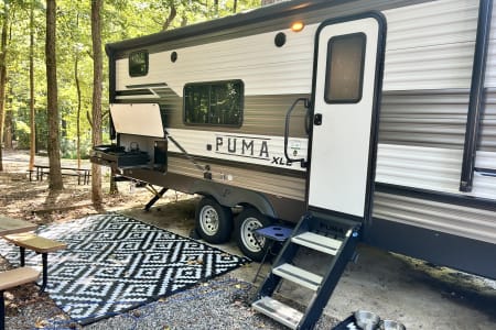Endless hot water, dual A/C, and an outdoor kitchen make this camper perfect for Georgia summers. Great for family camping trips, weddings, tailgates, or extra guest space. Clean, reliable, and cared for by our family-owned small business in Peachtree City, GA.