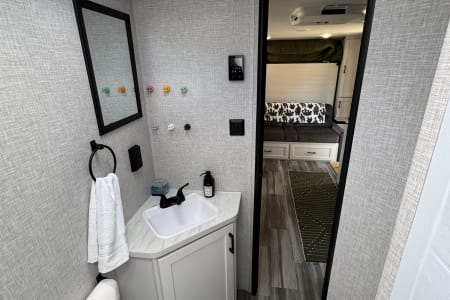 Outdoor Living: Relax under the 13-foot power awning with integrated LED lights and enjoy tunes from the marine-grade exterior speakers. An outside griddle with a quick-connect hose is also included for campsite cooking.