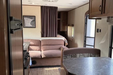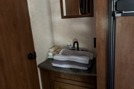 Would be stocked with linens, silverware, kitchen utensils, roll out mat, and all required things to set camper level and hook up to full hook up campsites