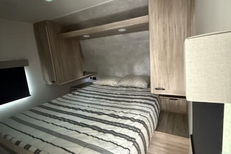 Welcome to Bunkhouse Bliss, a 2024 Winnebago Access 26BH designed for families who want comfort, space, and adventure. With room for up to 6 campers, it features a private queen bedroom, rear double bunks, and both a sofa and dinette that convert to extra beds. Inside, you’ll enjoy a fully equipped kitchen with a 3-burner stove, oven, microwave, and 10 cu. ft. fridge, along with a full bathroom and modern finishes that make the space cozy and practical. Powerful air conditioning, a furnace, and generous storage ensure everyone stays comfortable on the road.