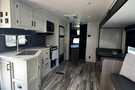 This beautiful, new travel trailer is more than just a camper—it’s the start of countless new adventures. With its modern design, spacious layout, and cozy comforts, it’s ready to be filled with laughter, stories, and unforgettable memories. Imagine pulling up to a scenic campground, the sun shining above during the day and the bright stars sparkling at night. Friends and family gather around, cooking, sharing meals, and enjoying each other’s company inside and out. Every trip becomes a chance to explore, relax, and create moments that will be cherished for years to come. This trailer isn’t just about travel—it’s about building lasting memories under sunny skies and starry nights with the people who matter most.
