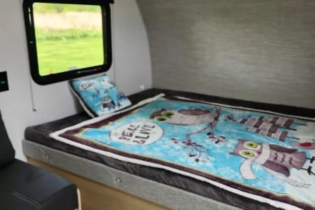 Our little trailer is perfect for your next getaway. It is ready to be enjoyed by many. Perfect for that adventure with the kids or grandkids. Make plans for a friends trip. Take a weekend or a week and just get away. It sleeps 4 people comfortably. Large baggage door for easy access. Fireplace for heat if it gets a little chilly at night. AC for those hot summer days to go and retreat to get cooled off. (You will need to be connected to Electric to use the AC, Fireplace and water. The only thing that runs off the battery is the refrigerator and lights.) Enjoy the relaxing of camping with some of those amenities we love. We do allow small DOGS with the understanding you will clean up after your dog or there will be an additional cleaning fee if not done. No smoking is allowed. If there is evidence of smoking a $250.00 cleaning fee will be issued. We will provide RV friendly toilet paper. So just grab what you need for a camping trip and load up. It has 1 Queen bed and 2 bunks. The sofa could be used for a small child for sleeping also. So grab your blankets and camping goodies to load and go have some fun. We have newly upgraded the queen mattress and added padding to the bunks. Also we have installed a paper towel holder and dish towel holder in the kitchen area for a little more convenience.