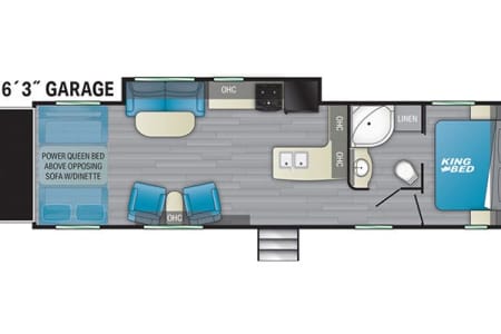 * Sleeps up to 8*: King bedroom, convertible sofa, and 2 rear queen bunks