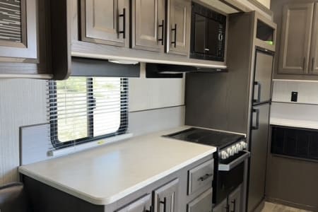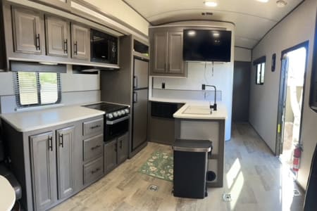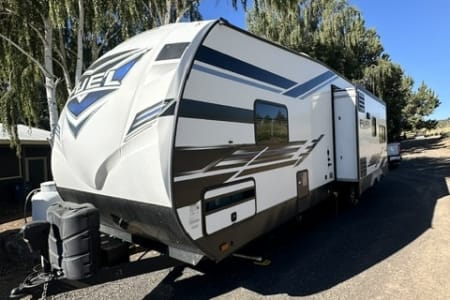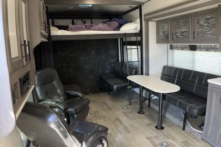 Take your adventure anywhere! Whether you’re headed to the Oregon dunes, camping in the mountains, or tailgating at an event, this toy hauler has the space and comfort to keep everyone happy. With room to haul your side-by-side, dirt bikes, or gear, plus sleeping for up to 8, it’s the ultimate rig for families and groups.