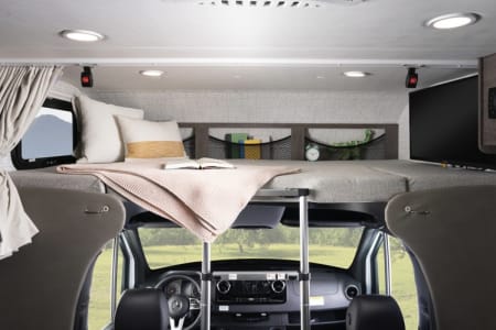 - Motorized murphy bed. Allows you to have a nice couch during travel as well as during the day when you want to relax