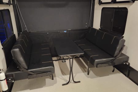 Bring all your toys and all your friends! The 15' 6" garage area of this fifth wheel toy hauler has enough space for you to bring along your favorite off-road toys! The garage area also has opposing flip-up sofas with a table in between and a raised queen bed above, plus a loft, and a bathroom with shower. There is lots of walking around space in the middle living/kitchen area thanks to the sofa with recliners slide, as well as the refrigerator and three burner cooktop slide. The dual entry bathroom has a radius shower for you to freshen up in each morning and an entrance into the front private bedroom for more convenience! 100% LED Lighting with Accents 2 - 15,000 BTU Air Conditioners 3 Burner Stovetop with Oven 30” Microwave Comfort Plus Adjustable Powered King Bed System 72"x80 150 Gallon Fresh Water Capacity 65 Amp Converter 8’ Ramp Door Back Up Camera Bluetooth Stereo DUR-A-POXY Cargo Floor with 5,000 lb Tie Downs Enclosed and Heated Underbelly Exterior TV hook Up Large Flat Screen TV 2 LED Lighted Power Awnings, Front Cap, & Rear Loading Lights Multiple USB Charging Ports Residential Farm Style Black Stainless Steel Sink Carbon Monoxide Detector 50 AMP Service Outside Shower with Hot and Cold Water 5500 Watt Inverter Generator 6 Point Auto Leveling System Fireplace Pass Through Storage 2 Full Bathrooms with Shower Wardrobe / Closet Reclining Sofa with Heat & Massage Patio Deck with Railing & Ramp Patio Step with Handrail Outside Speakers Two Entry / Exit Doors TV Antenna / Cable Hookup Bathroom Skylight 30 Gallon Powered Fuel Station Convert-A-Loft Garage Storage System Tire Pressure Monitor System 12 Volt Heat Pads on All Holding Tanks Zebra Shades (Light Filtering and Blackout Capable) Juice Pack - Includes 50W Solar Panel, 27 Series Marine Battery, 30 AMP Controller, and Voltage Meter Power Maxx Extreme Solar Package - Includes an Additional 200 Watts of Solar Panels and a 2,000 Watt Inverter that Controls 5 Dedicated Outlets Delivery options available!