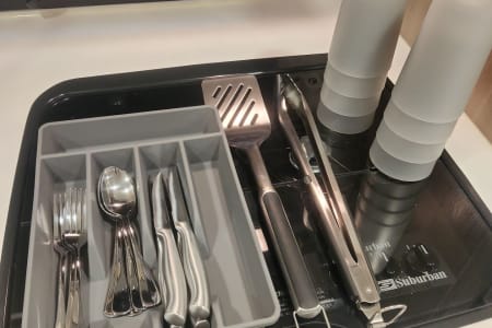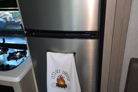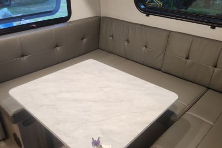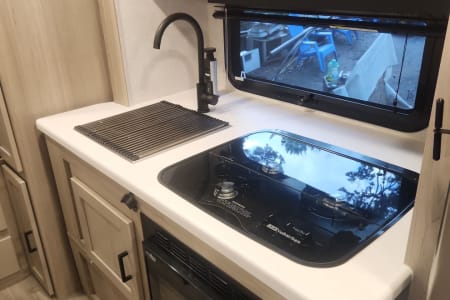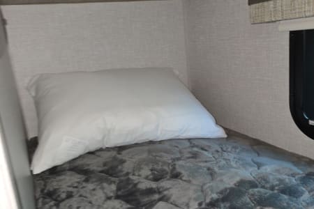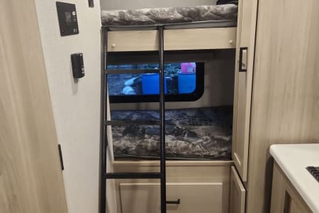 Family-Friendly Camper Rental with Bunk Beds for your Adventure. Great for first timers, it's lightweight and easy to pull. Imagine cooking meals on the outdoor stove with your family gathered around the picnic table under the stars. Enjoy your favorite campfire snacks. Kitchen has a stove, a microwave, basic kitchen utensils, and coffee maker for your convenience.