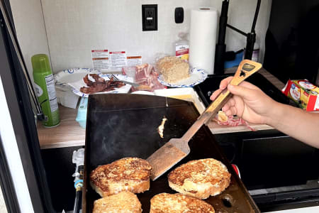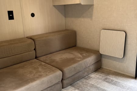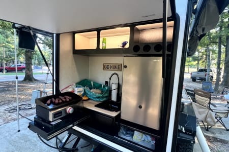 • Outdoor Kitchen – Slide-out fridge, sink, and cooktop to keep meals simple and fun.