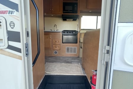 Dependable Winnebago quality and simplicity, with everything you need packed in this little camper. Queen size bed in rear corner, with large sleeping area above the cab, and a sofa and dinette that fold down this camper can sleep up to 8. Bathroom includes shower, sink, and toilet. Built in generator can power camper for dry camping or while traveling. Camper has AC and propane heater. Fridge that can work on propane or electric. The camper comes with coffee pot, and basic kitchen pots, pans, and utensils. Linens and towels are not included in the base price but can be added for and additional fee.