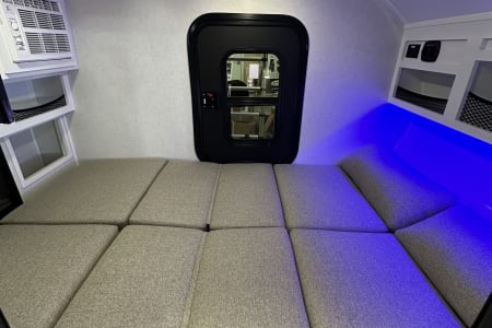 • Cozy Interior – A/C, electric fireplace heater, HD TV, LED lighting, and smart storage cubbies for comfort after a long day outdoors.