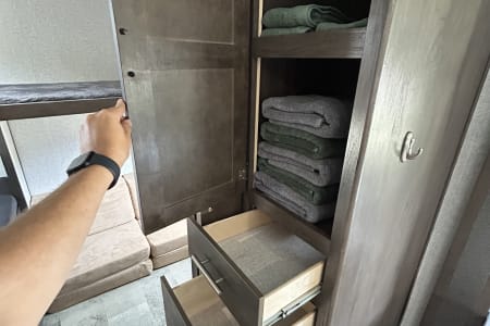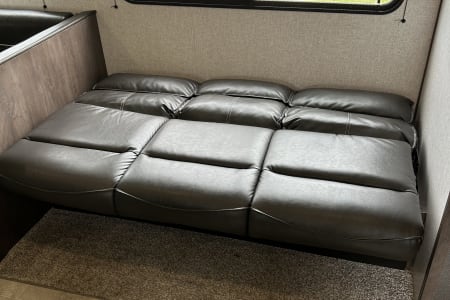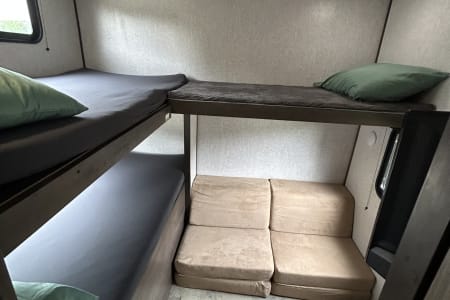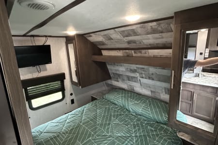Inside, you’ll find all the comforts of home: cozy sleeping spaces, a fully equipped kitchen to cook your favorite meals, and a welcoming living area where you can gather for games or a movie after a day of exploring. Thoughtful touches throughout the trailer make your stay easy and enjoyable, so all you need to bring are your clothes, food, and a sense of adventure.