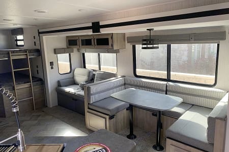 Spacious 2022 Forest River Puma 28DBFQ with queen bedroom, double bunks, full kitchen, and bathroom. Sleeps up to 8—perfect for family trips or group getaways.