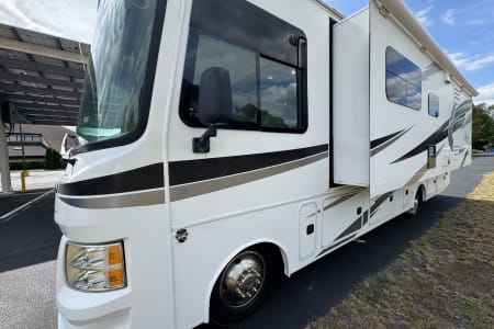 This 2018 Jayco Alante 29S isn’t just another motorhome. With its whole-wall slide, it opens up into a spacious living, dining, and bathroom area that feels more like a modern apartment than a camper. It comfortably sleeps up to 8 people, making it the perfect choice for families, groups of friends, or tailgate crews ready to make unforgettable memories.