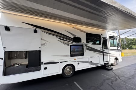 Welcome aboard The Glamp Champ — a 32-foot rolling palace of fun, comfort, and adventure. Whether you’re setting up camp at a football stadium, cruising across the country on a bucket-list road trip, or parking lakeside for a weekend with family, this RV is designed to give you more than just a ride. It’s an experience.