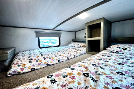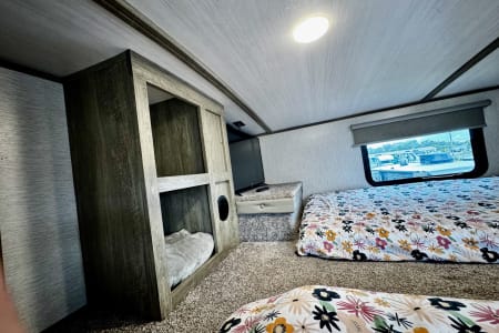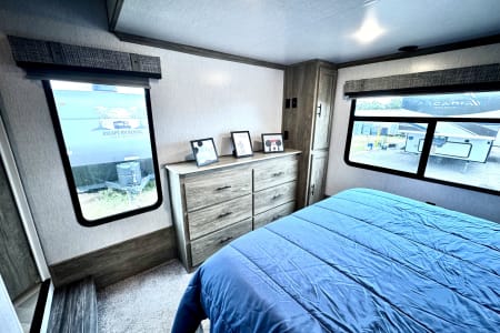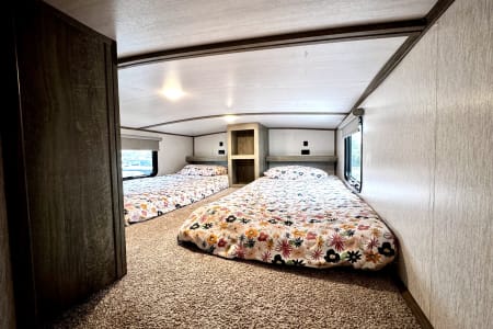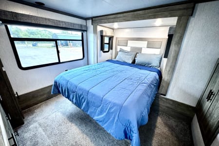 Bedroom and loft - There’s a loft above the bedroom—ideal as a kids’ zone or extra storage, The master bedroom features a custom king bed slide, delivering ample sleeping space and comfort, Access via stairs located next to the bathroom, maximizing privacy and flow.