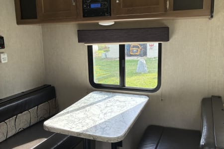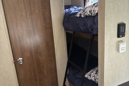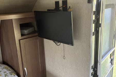 The interior is well maintained with a queen size and 2 Twin beds and a dinette bed new memory foam toppers on all (I sleep better in the trailer than at home), blue tooth radio with interior and exterior speakers, smart tv, rugs and trash cans.