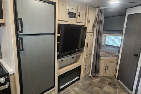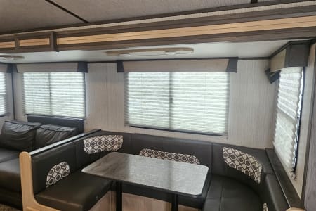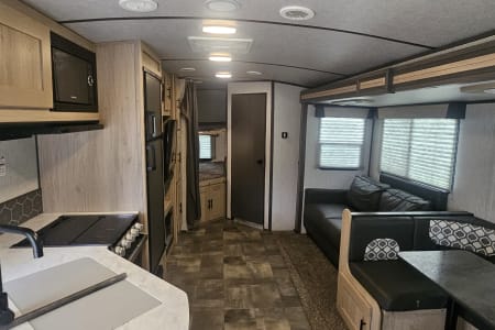Hi everyone! I’m a 2020 Travel Trailer, and I’m ready to light up your next adventure! I’ve got a private king bedroom up front, two double bunks in the back for the kids (or the young-at-heart), and a couple recliners and a big U‑shaped dinette that turn into extra beds—so I can sleep up to 10 happy campers!
