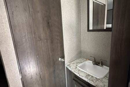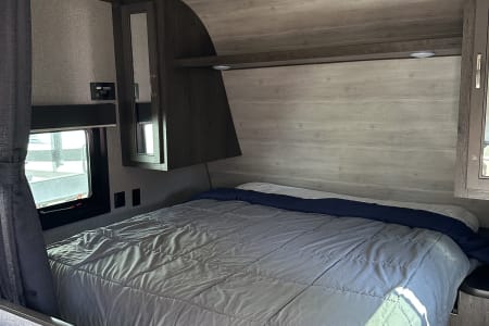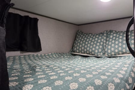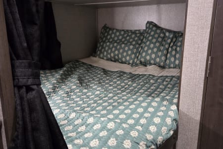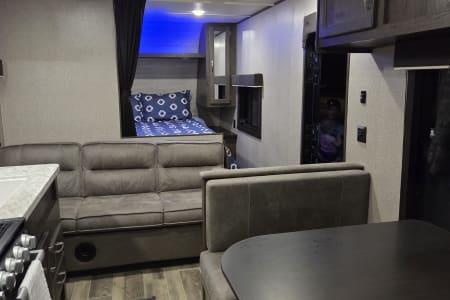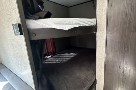 The 2021 Jayco Jay Flight SLX 8 264BH is a 29' 5" long travel trailer designed to sleep up to 8-9 people, featuring a front queen bed, a dinette and jackknife sofa for sleeping, and two full-size bunk beds in the rear. Key features include a fully equipped kitchen with a three-burner range and oven, a marine-grade toilet with a tub/shower, and ample exterior storage. The trailer also boasts Jayco's durable construction, including the Magnum Truss Roof System and I-Class cambered structural steel I-beams, alongside the mandatory Customer Value Package which adds amenities like a power awning, spare tire, and outside shower.