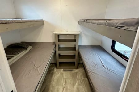 Make camping easy and enjoyable with our spacious 2025 Dutchmen Kodiak! Perfect for families, this camper features two private bedrooms – a rear room with two sets of bunkbeds and a door to keep the kids tucked away, plus a front bedroom with a queen bed and dual side doors for easy access.