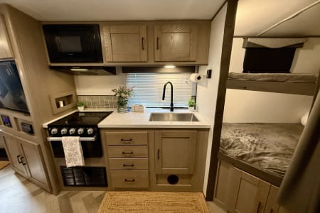 The 2021 Cruiser Twilight Signature 2600 is a modern, family-friendly travel trailer designed for effortless getaways. With a private king bedroom, double bunks, convertible dinette, and a tri-fold sofa, it sleeps up to 8–9 comfortably. Enjoy cooking indoors or outside with the full kitchen and outdoor kitchenette. A spacious slide-out adds extra room to relax, while power stabilizers, a power awning, and easy-to-use hookups make setup a breeze. At just over 6,000 lbs dry weight, it’s towable by many half-ton trucks.
