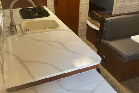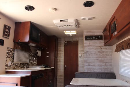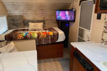 Hank the Camper is an excelent family camper easily puled by most SUV, vans and trucks. it is fuly self contained, interior has ben updated with floring, counter tops and more. It has one queen bed, a dinete bed and two bunk beds easily accomodating six guests. Bathroom with Toilet, Shower and tub, excelent water pressure and hot water. A/C, heat, TV, radio and DVD. 100W Solar to run items and charge gear when bondocking. Superlight and easy to tow with or without the weight distribution hitch. Hank the Camper has taken our family on many an adventure, it is now time to share the fun.
