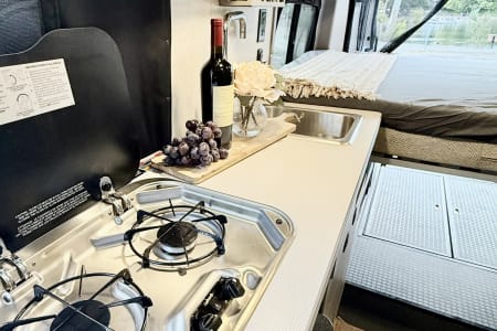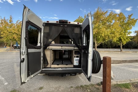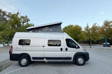 The pop-top roof creates extra sleeping space for 2, making it ideal for families or friends. With seating and sleeping for up to 4 people, a kitchen, bathroom with shower, solar power for off-grid camping, and backup camera for stress-free driving, this van is ready for your next adventure.