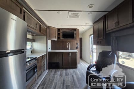 The Cherokee Wolf Pack packs adventure and comfort with a 15' garage for your toys, full kitchen, and private king suite. Load up the ATVs or dirt bikes and enjoy the perfect basecamp for your getaway!