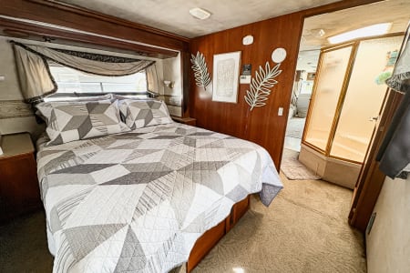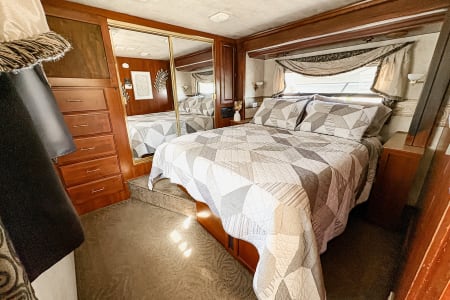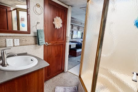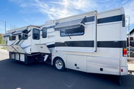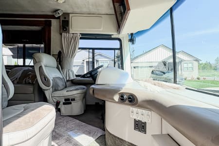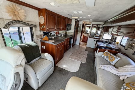 Hit the road in style with this roomy Class A RV! You’ll love the comfy leather seats, real wood cabinets, and open layout that feels just like home. Since we’re proudly pet-friendly, please note that while we go above and beyond to ensure cleanliness, this coach may not be the right fit for those with severe pet sensitivities. Perfect for family getaways, road trips, or a cozy adventure anywhere the road takes you!