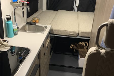 The 21 gallon water tank and propane let you stay comfortable off the grid for 3-4 days.