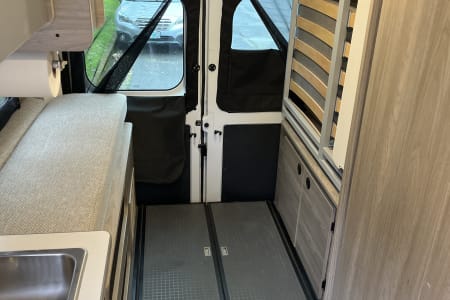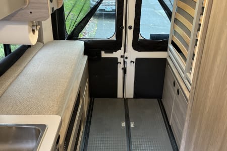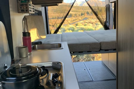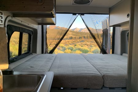 Ready for exploring! The Solis is perfect for a 2-4 people. The Murphy Bed in the back sleeps 2 and can be up or down, if you prefer to sleep in the pop-top and use the back to haul your bike or gear. The pop-top is easy to use in rain or shine.