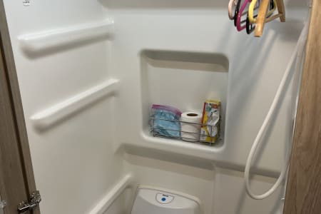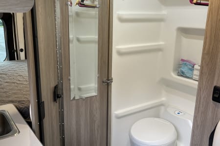 The wet bath is a perfect spot to hang your wet jackets or wetsuit to dry. A cassette toilet is easy to empty in any bathroom.