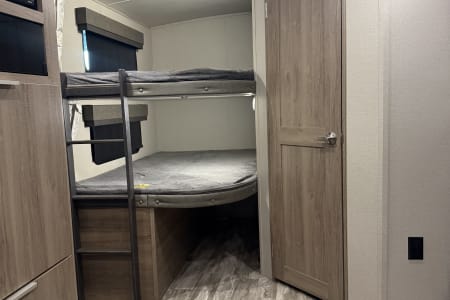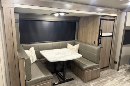 Lots of upgrades such as full black out shades, built in surge protector, 2 30lb propane tanks and a Blackstone griddle in the outdoor kitchen.