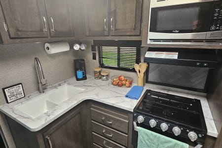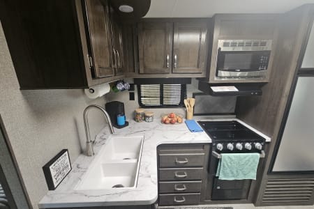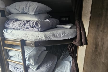 Your fully-outfitted Jay Flight 28BHS camper rental will also include everything you'll need for a relaxing time like premium linens, towels and bedding for all of your guests, a fully-stocked kitchen which includes dishes, pots, pans, flatware set, cutlery set, coffee maker, toaster, blender, rice cooker/veggie steamer, broom with dust pan, cleaning supplies/garbage bags, plus much more. Let us deliver, set-up, and all you have to do is show up and enjoy! Reserve your Jay Flight today!