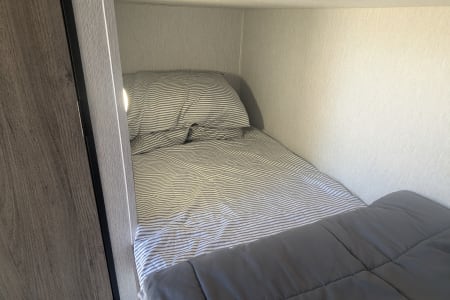 Looking to enjoy the outdoors? Looking for a towable camper by most SUV's and small trucks? Look no further this is the unit for you. The trailer measures 21' and has a dry weight of 2,880 pounds. This trailer has AC, and heater. Queen bed, bunks for the kids, and the dinet also turns into a sleeping area. This trailer will come fully equipped with pillows, blankets, towels, cookware, plates/cups, silverware, toilet paper and paper towels. This is a great unit, and is very reliable. Everything operates, and functions as it should. Great for smaller campgrounds, or larger ones whichever you prefer. Safety walk around, and hook up to vehicle will be done for each guest who rents the camper.