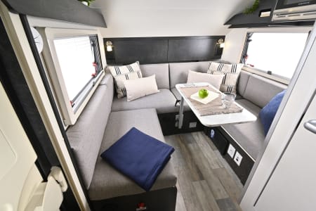 • Indoor Kitchen: Cook with ease using the built-in stove, sink, and storage—no need to brave the elements.