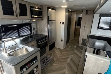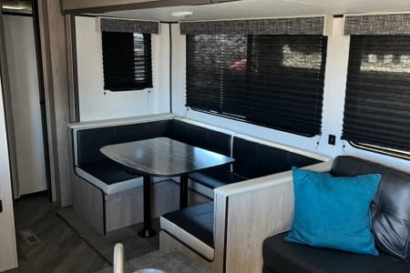 We love to share camping fun and adventures. We strive to provide a memorable, easy and relaxing experience for you. The camper comes stocked with your camping essentials. Some you may not have thought of! We know how hectic and anxious everyone is to get their vacation started. We look forward to servicing you! We strive to provide a complete camping experience without worrying about forgetting something or missing out! We provide: Full sets of fresh linen and pillows. Sleeping bags Towels, washclothes, soap, shampoo, conditioner, hairdryer, cleaning products, RV toilet paper, paper towel, garbage can with bags, broom and dust pan. For personal health we have adult and kids over the counter medications, thermometer, sunscreen, bug spray, bandaids, pen, paper, fully equipped with cooking and dining utensils, laundry basket, detergent and fabric softener. For maximum comfort the queen bed and two bunk beds are equipped with additional memory foam padding for maximum firmness and comfort. The camper has privacy sliding doors in the front and back areas. For entertainment we have a 41 inch smart TV with DVD. There are USB ports through the RV with select charging cables. For outdoor, we provide a complete set of outdoor cast iron cookware and camping ware for outdoor fire and grills. We have a foldable table and chairs, lawn chairs, pool noodles, electric bug zapper, fly swatters, propane outdoor grill, electric ice maker, outdoor camping lantern, extension cords, and screw drivers. There are two air conditioners one in front and one in rear for those really hot hot summer days!! We setup the RV completely for you so no need to worry about that!! We can accommodate both 30 and 50 amp RV sites. (Please be mindful that 30 amps may not power all electronic components i.e both air conditioners running together) (Dry Camping/Boondocking) 1. Solar battery charger with second back up battery 2. Generator 50/30 amp 7000 watts genertor - One of quietest generators in its class so no worries about noise complaints!! For the adventurous cooks the camper does come stocked with over 25 different various spices. Please ask for details. If there is something not listed please let us know how we can help! We want our renters to have a wonderful and memorable camping experience with ease and very little hassle. We want you to enjoy yourself, have fun and tell your friends about us! We love that people have wonderful camping memories and experiences. For us to provide high quality services we ask people to respect our camper and not to climb onto the roof and no smoking inside the camper. We ask you to notify us of anything becomes damaged or broken. We ask you to refrain from taking stock items from the camper with you once your camping adventure is complete. For festivals we do not rent out for Burning Man or crossing the Mexican Border.