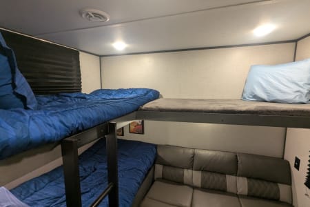 Kitchen/Dining: Dinette bed (full length twin), and Futon (short twin)