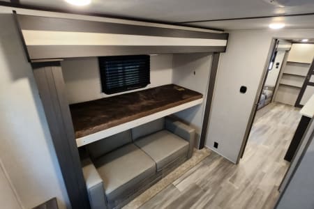 This gorgeous camper is an absolute dream!!! Sleeps 10 very comfortably in an array of different bed options!!