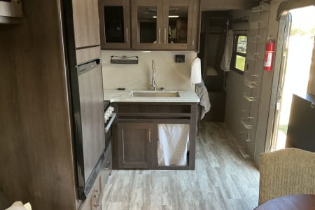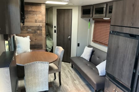 The trailer is thoroughly cleaned and sanitized between each rental. Stocked with basic kitchenware, outdoor rug, and leveling gear. Just bring your linens and personal items!