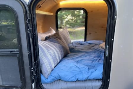 Hit the road with our 2023 Bend Teardrop Camper Trailer — the perfect mix of comfort, simplicity, and off-grid capability! At just 1,750 lbs and 125lb tongue weight, it’s easy to tow with most SUVs, crossovers, and even some cars, yet still packed with thoughtful features for your next adventure. Sleeps Up to 4 Queen bed in the main cabin – cozy and comfortable after a day on the trails Full-size bed for kids or guests (sleeps two more!) Premium bedding options available upon request Off-Grid Ready Solar-powered system keeps lights and fans running even off the beaten path USB charging ports to keep your phones and devices powered up Able to connect to a standard outlet for shore-power hookups at campsites or in your driveway Easy to Tow & Set Up Lightweight 1,750 lbs – towable by most vehicles with a 2” ball and 7-pin connector Compact design fits easily in tight campsites or driveways Simple setup — you’ll be ready to relax within minutes Built for Colorado Adventures Whether you’re camping in the Rockies, exploring Moab, or relaxing by a lake, this Bend Teardrop is built for year-round adventure. It’s insulated, sturdy, and designed to go wherever your weekend takes you. Features & Amenities Interior LED lighting and ventilation fan Storage cabinets and under-bed storage Optional add-ons: camp stove, cooler, chairs, and kitchen kit Lightweight, modern, and adventure-ready — this camper is perfect for families, couples, or solo explorers who want to travel light but stay comfortable. Book your next getaway today and see why the Bend Teardrop is one of the most versatile small campers out there!