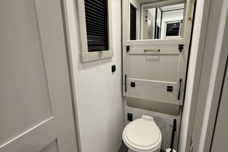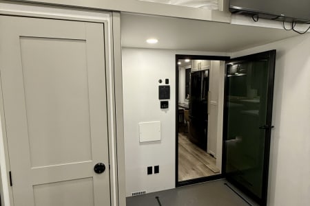 From a full automotive-style exterior finish to dual-pane frameless windows (with 6″ openings) and a ramp door rated for patio use, this rig shows that no detail has been overlooked. It’s ideal for renters who want both style and substance.
