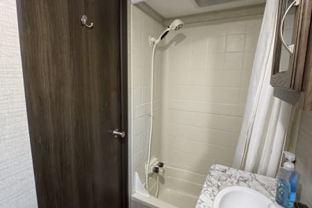 Love being able to explore the outdoors, but have the same love of knowing your bed will be dry, your toes will be warm and you’ll be able to keep your food at optimum temperature during your entire adventure? Our camper is the perfect option for a family getaway! When we picked this home away from home we were intentional about the lay out. We wanted everyone to have their own bed and to be able to get in and out of the bathroom from the outside to wash off if needed without spreading sand or dirt in our living space. We have plenty of storage for clothes and supplies and have the unit fully stocked with all the amenities you can think of. We believe that camping can be fun for everyone and hope that this camper will allow others to make the same memories we’ve been creating.