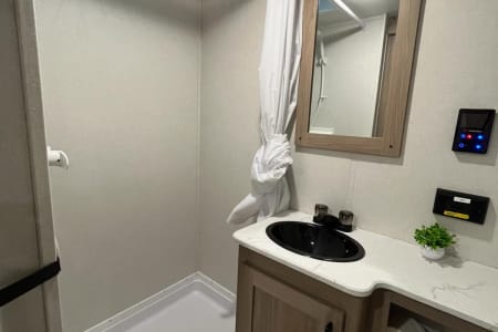 Enjoy your getaway in this modern travel trailer that sleeps up to 7 people. It features a private bedroom, double bunks, a fully equipped kitchen, full bathroom, and a slide-out that expands the living space. Ideal for families or small groups, with A/C, heating, and a power awning. Easy to tow and ready for your next adventure.