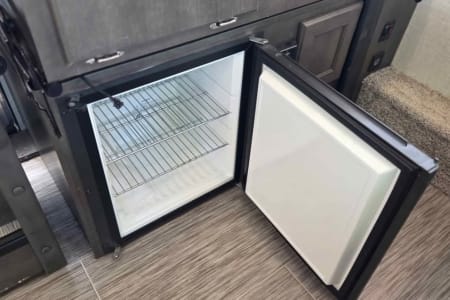 Easily make your favorite camping meals with the 3-burner propane stove top, refrigerator, microwave, pots and pans, cooking essentials, plates and silverware we provide!