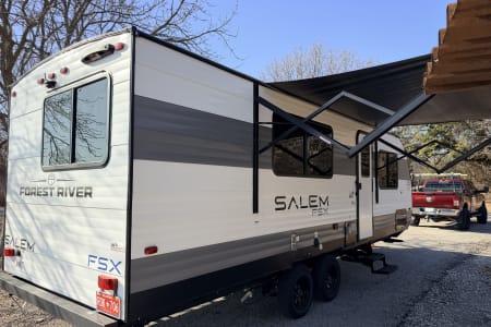 - Outdoor living is covered too: 12-V power awning, LED lighting and plenty of space to set up camp and enjoy the outdoors.