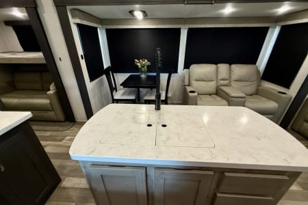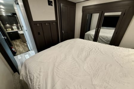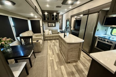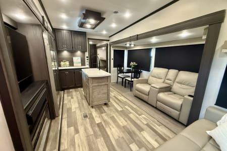 With multiple slide-outs and plenty of room inside, this rig offers true separation of zones—sleeping, lounging, cooking—so everyone in the group gets their own space. With a strong build and advanced suspension, it’s designed for both comfort and durability.