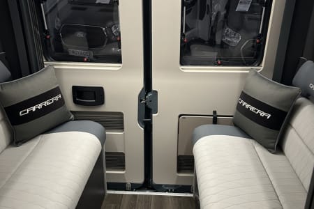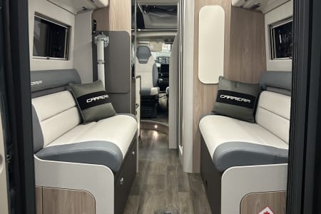 Swift Carrera 244 auto. This is a 4 berth with 4 travelling seats and has a pop up roof. The Carerra has a great specification with whale heating and hot water system and touch screen Swift command control panel. There is also a solar panel and Thule canopy awning. This vehicle has also been fitted with a detachable towbar. The 244 is a 4 berth with 4 travelling seats and an end lounge. This is a 2.2 litre Fiat with 140hp auto gearbox. Swivel captain seats at the front and a dinette with 2 forward facing seats and a removeable table. There is a galley kitchen with 2 burner hobs and oven with grill and a good size compressor fridge. The washroom has a shower, toilet and wash basin. At the rear in the lounge with parallel seats that will pull out to make a double bed. And don't for get the pop up roof with folding ladder for access up to the roof with a huge double bed. Automatic,Metallic Paintwork On Pop Top,Opening Side Window,NCC Approved Conversion,Pop Up Roof,Parking Sensors,Leisure Battery,4 Traveling Seats,Single Passenger Seat,Automatic 140bhp, 2.2 litre,Thule roll-out awning,Alloy Wheels,Remote locking,4 Berth,2 bed,Door flyscreen,Blinds & flyscreens,Cassette toilet,Cruise control,Blown air central heating,Central locking,CO2 Alarm,Electric mirrors,Fridge,Hot water,Fitted Awning,Manufacturer warranty,Oven,Owners manual,Sat-nav,Sat Nav,Fiat,Over Cab Pull Down Bed,External Shower Point,End Dinette/Lounge,Fixed Bed,Side Washroom,Family Layout,Wetroom Washroom -